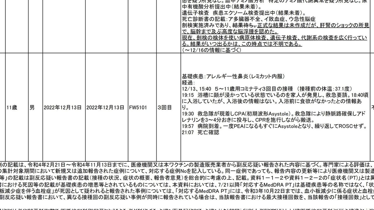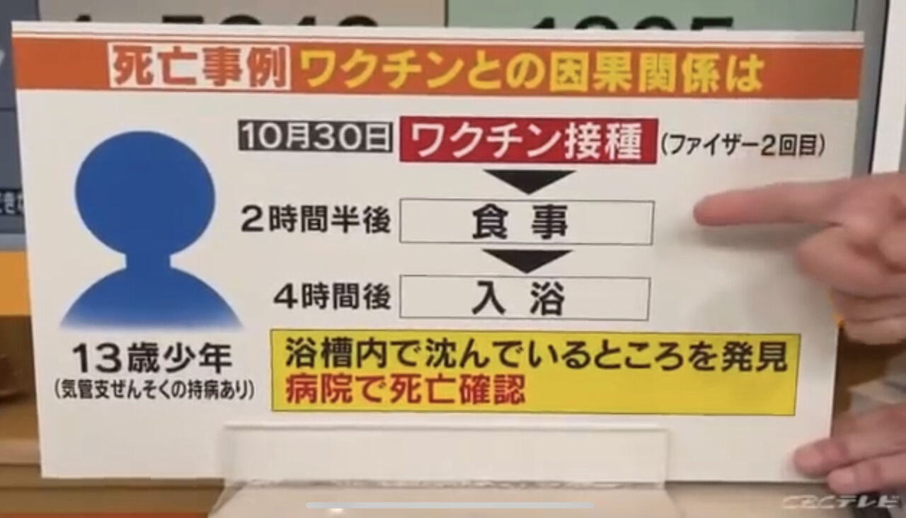 今回はコロナワクチンで普及してから日が浅く、死亡事件も連日ニュースになっているグレーなワクチン、しかも子供なんだから湯船に浸かるのはやめた方がええやろ