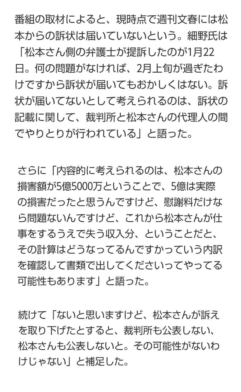 松本(損害賠償とか大きい数字言えば言うだけ得やろ!)