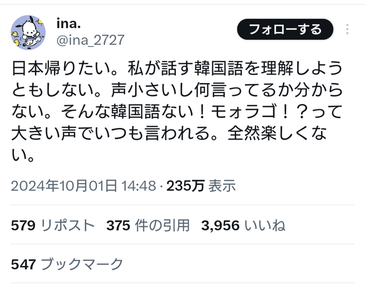 これが韓国語と韓国じゃなく世界中のどの言語でどの国に行く選択だったとしても同じ思いしてたやろな