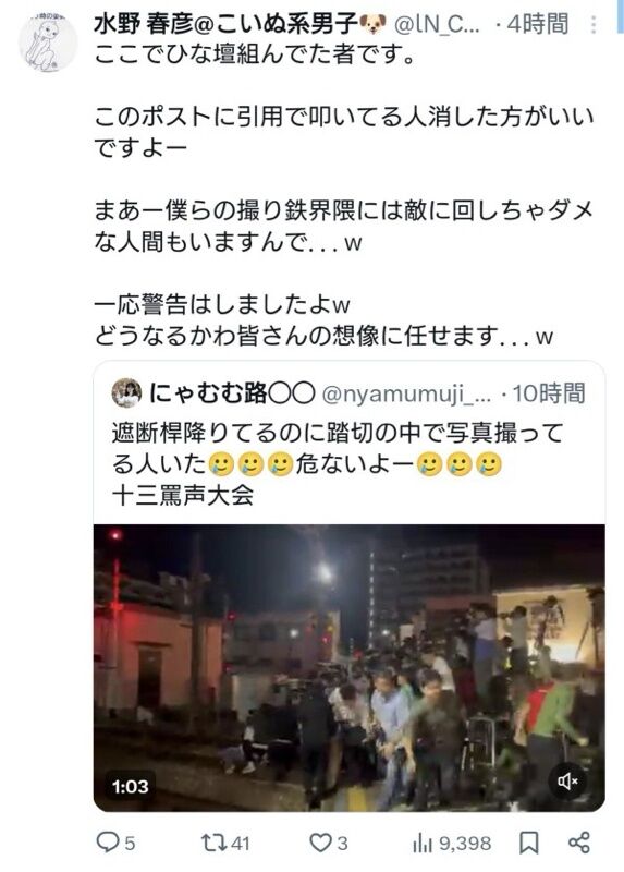 あ、ちなみに僕ら撮り鉄の事叩くと結構やばいっすよ