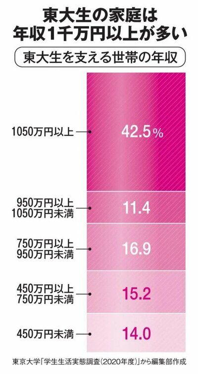 そもそも東大に行けるレベルの家庭の世帯年収が1000万円未満がこれだけいるってのが凄いよ