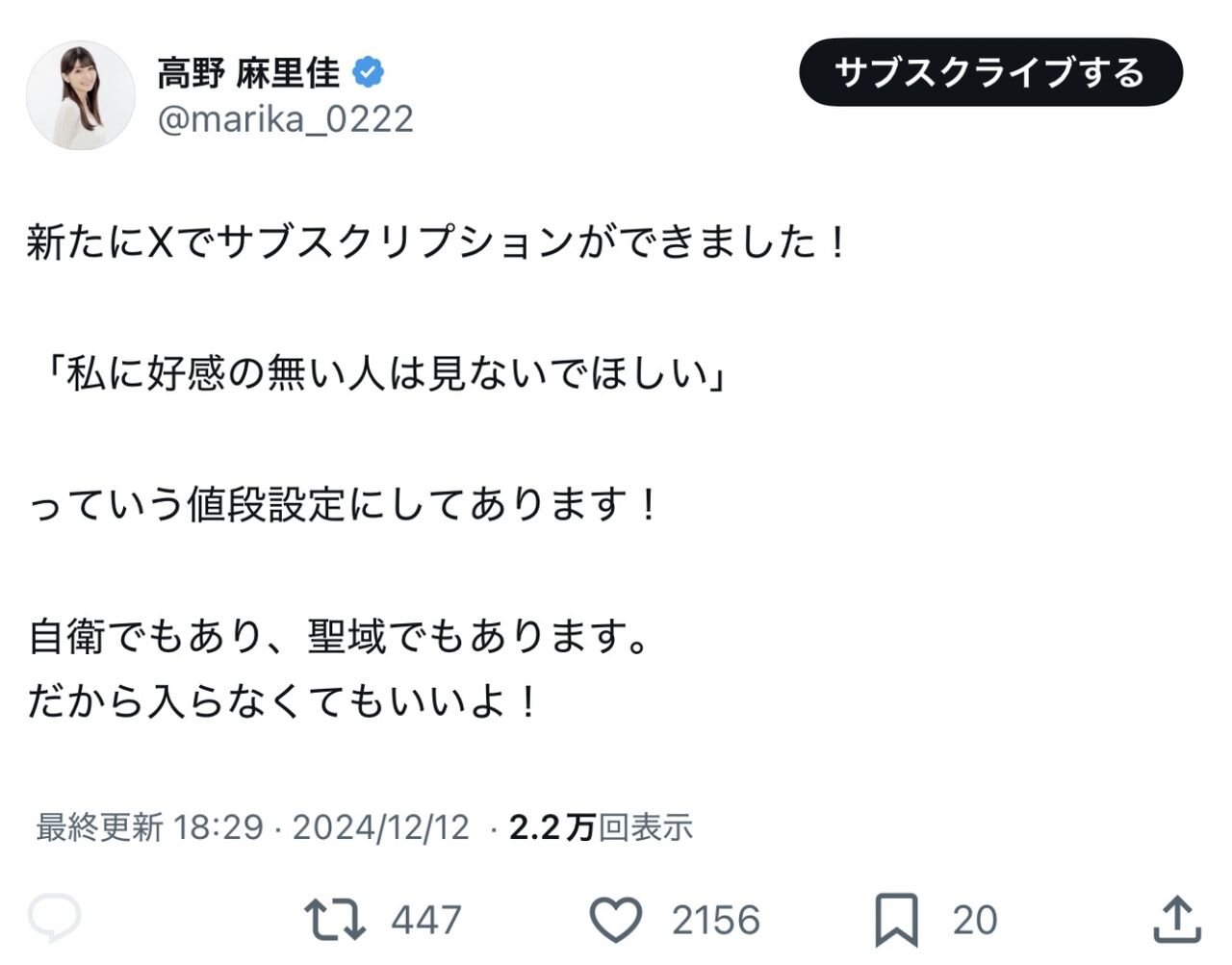 不特定多数の変なのも相手しなくて良くなるし(これ払う時点で十分変な奴だと思うけど)こう割り切るのも悪くないんじゃないか