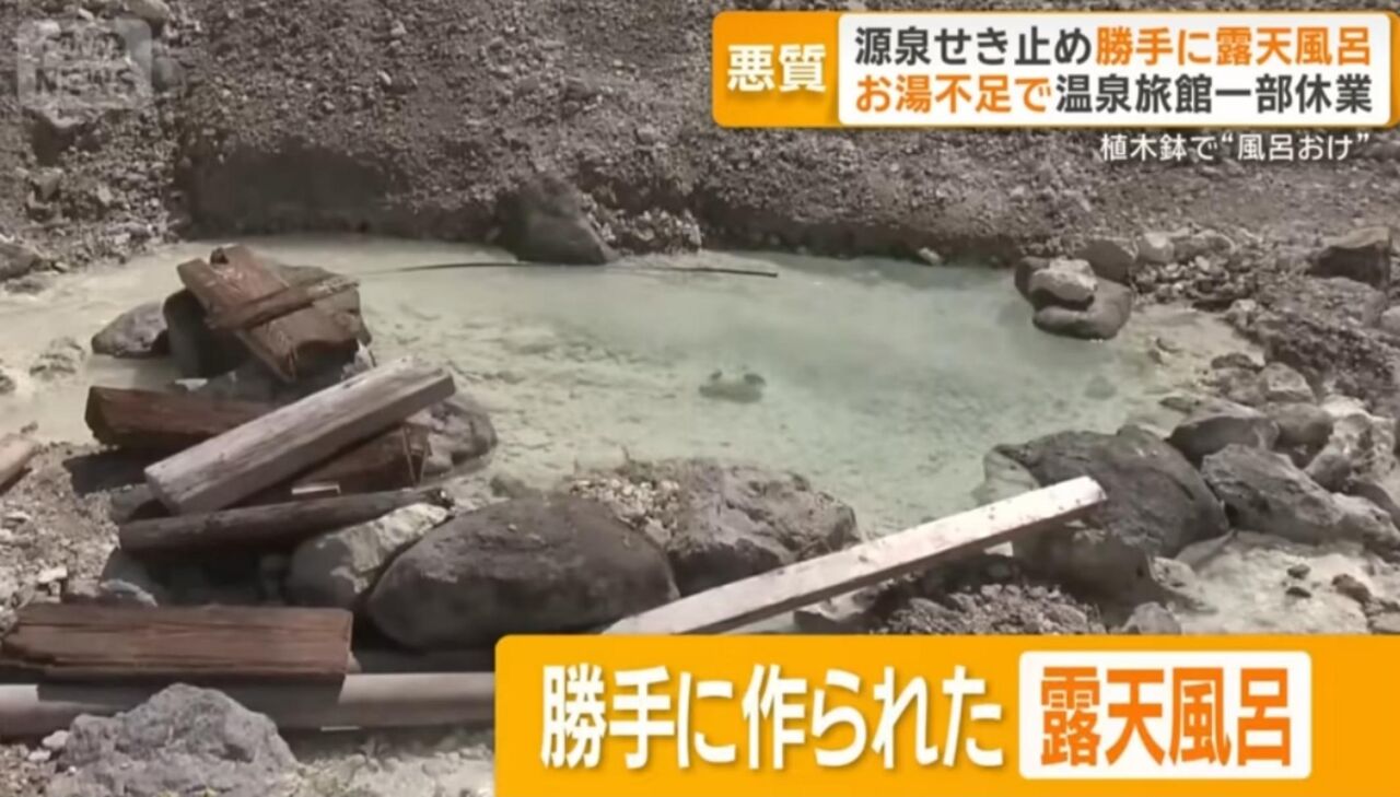 北海道蘭越町のニセコ五色温泉旅館の源泉付近に、何者かが無断で穴を掘って野湯を設営していたことが分かった。
