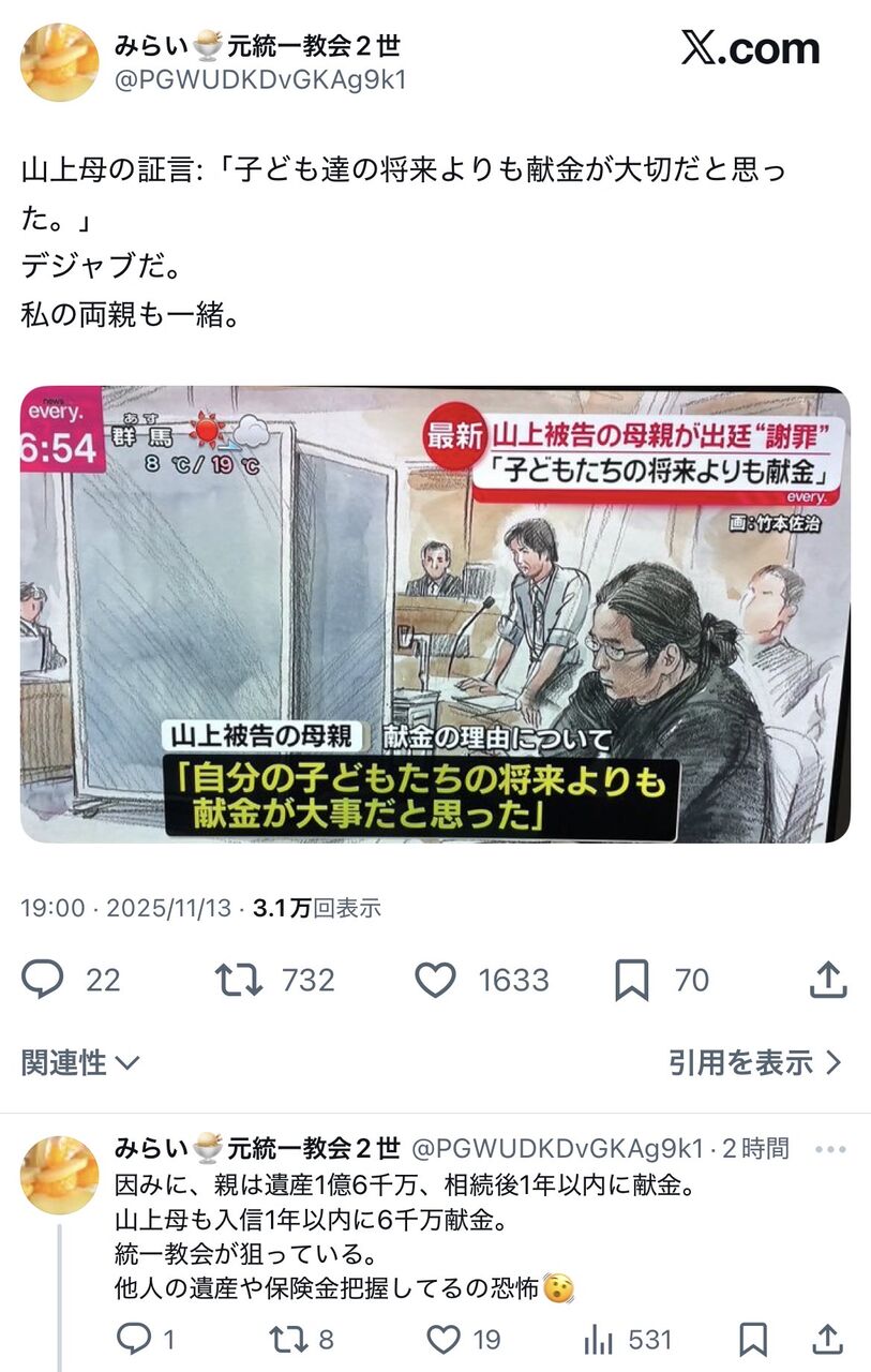 というか教団と故元総理の関係性は焦点にならいのかな